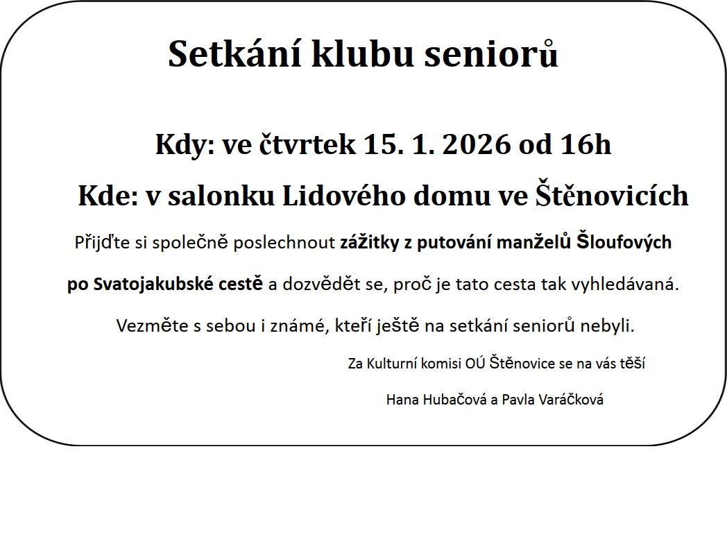 SETKÁNÍ SENIORŮ dne 15.ledna 2026 od 16.00 hodin v LD